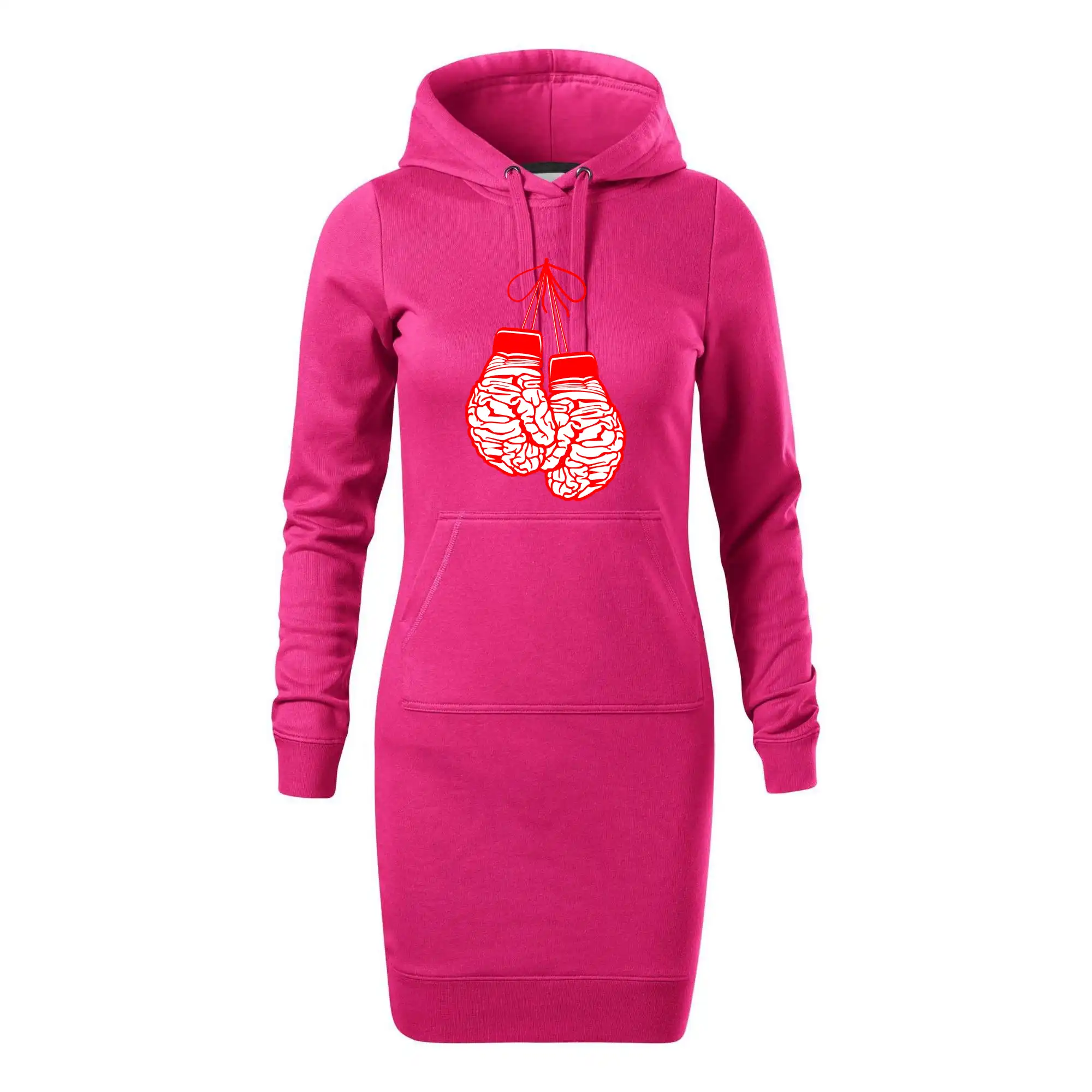 Dámske mikinové šaty MALFINI Snap 419 sú ideálnou voľbou pre ženy, ktoré hľadajú pohodlný a štýlový kúsok na voľný čas alebo každodenné nosenie. Ľahko vypasovaný strih s bočnými švami podčiarkuje ženskú siluetu, zatiaľ čo kapucňa s podšívkou a sťahovacou šnúrkou dodáva ležérny vzhľad. Šaty majú dĺžku nad kolená a sú vybavené našitým vreckom v štýle „klokanky“. Materiál je mäkký a príjemný na dotyk grâce à smesi bavlny a polyesteru s nepočesanou vnútornou stranou.