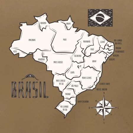 Brazília mapa s názvami regiónov