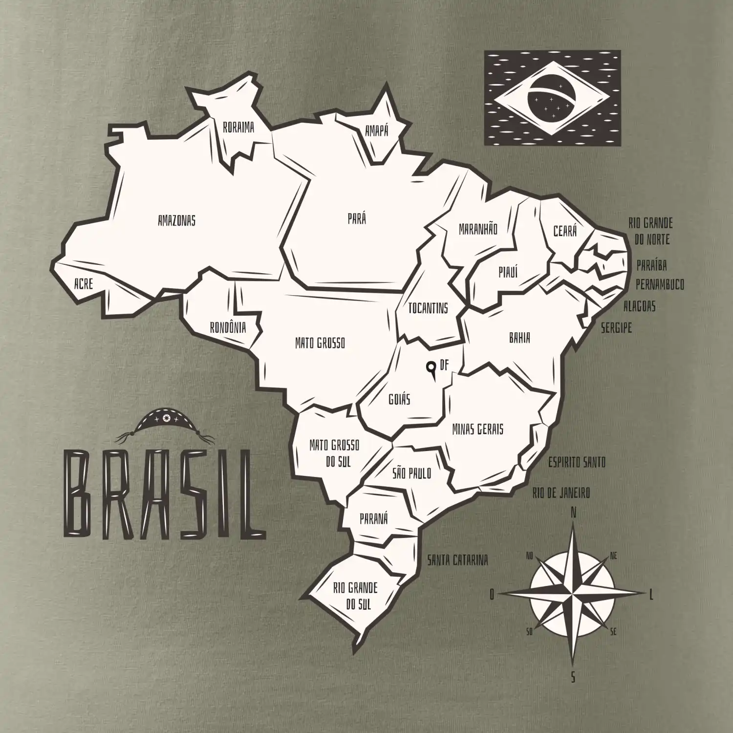 Brazília mapa s názvami regiónov