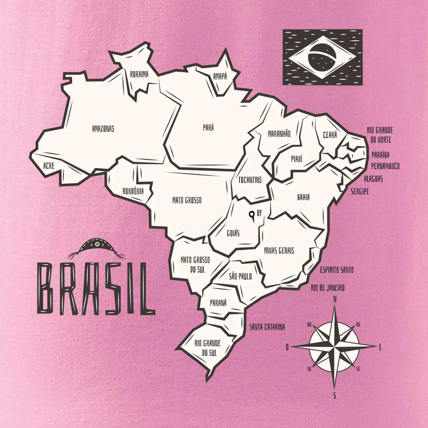 Brazília mapa s názvami regiónov