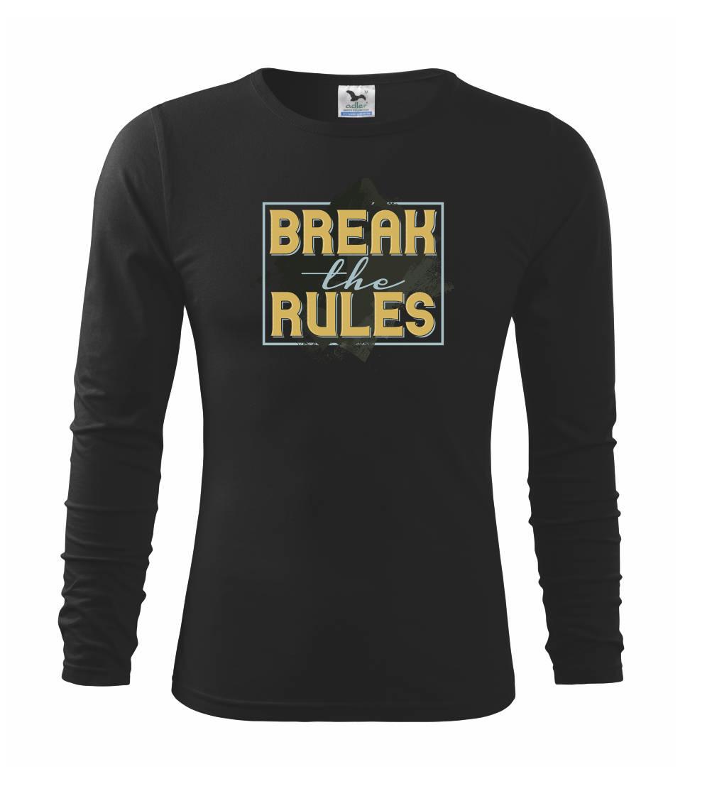 Rád porušuješ pravidlá? Si rebel? Tak toto tričko je pre Teba ako stvorené! Tričko s nápisom "Break the rules" je vhodný darček pre každého rebela. Ukáž tričkom o čom je Tvoj život. Zakázané ovocie chutí predsa najlepšie.