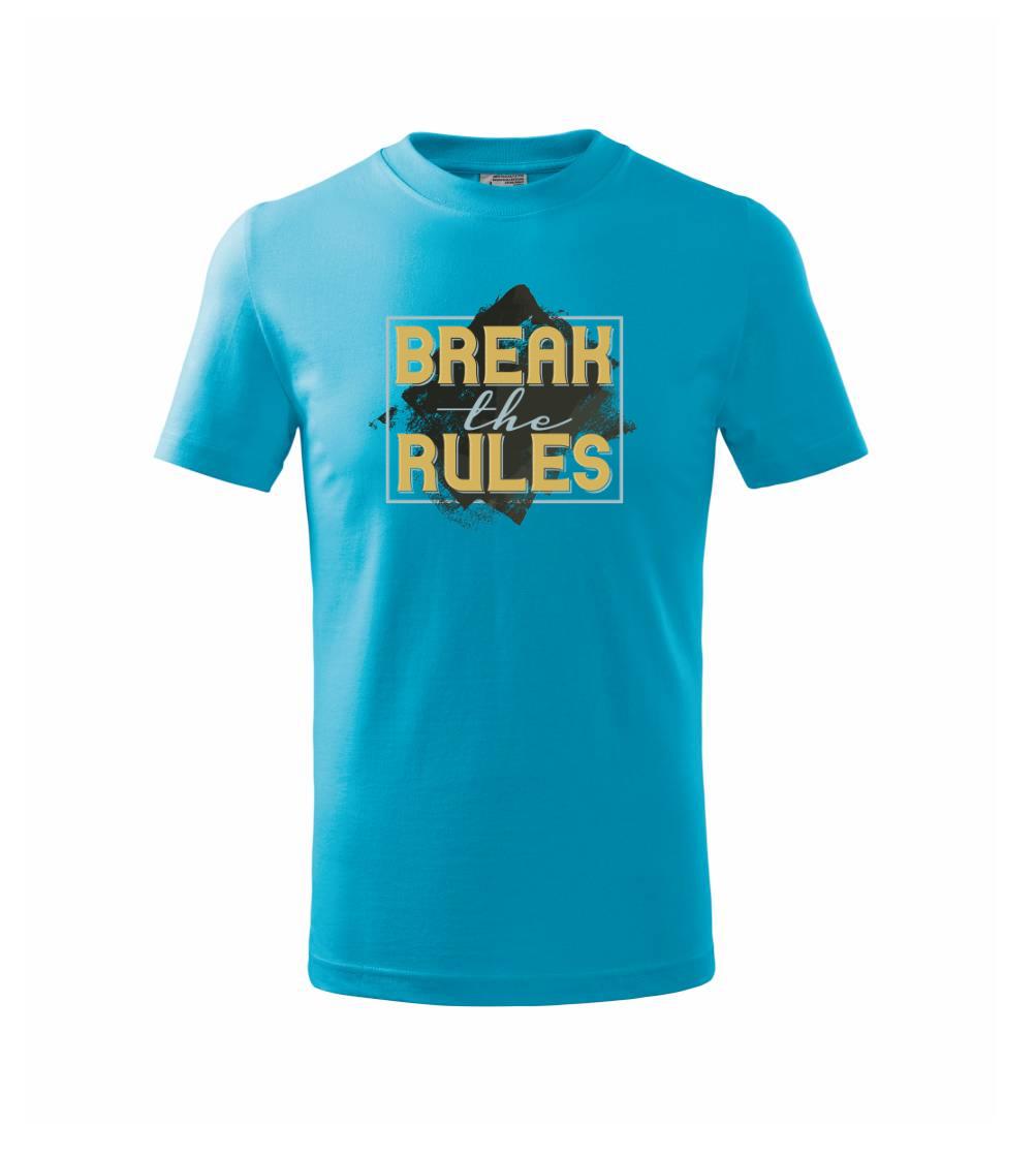 Rád porušuješ pravidlá? Si rebel? Tak toto tričko je pre Teba ako stvorené! Tričko s nápisom "Break the rules" je vhodný darček pre každého rebela. Ukáž tričkom o čom je Tvoj život. Zakázané ovocie chutí predsa najlepšie.