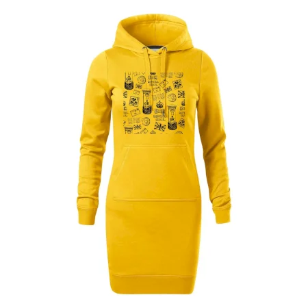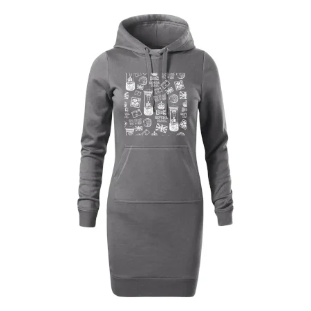 Dámske mikinové šaty MALFINI Snap 419 sú ideálnou voľbou pre ženy, ktoré hľadajú pohodlný a štýlový kúsok na voľný čas alebo každodenné nosenie. Ľahko vypasovaný strih s bočnými švami podčiarkuje ženskú siluetu, zatiaľ čo kapucňa s podšívkou a sťahovacou šnúrkou dodáva ležérny vzhľad. Šaty majú dĺžku nad kolená a sú vybavené našitým vreckom v štýle „klokanky“. Materiál je mäkký a príjemný na dotyk grâce à smesi bavlny a polyesteru s nepočesanou vnútornou stranou.