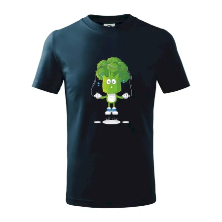 Detské tričko strednej gramáže s bočnými švami. Úzky priekrčník s prídavkom 5% elastanu. Vnútorná časť zadného priekrčníka začistená tkanou páskou. Spevnený ramenný šev.