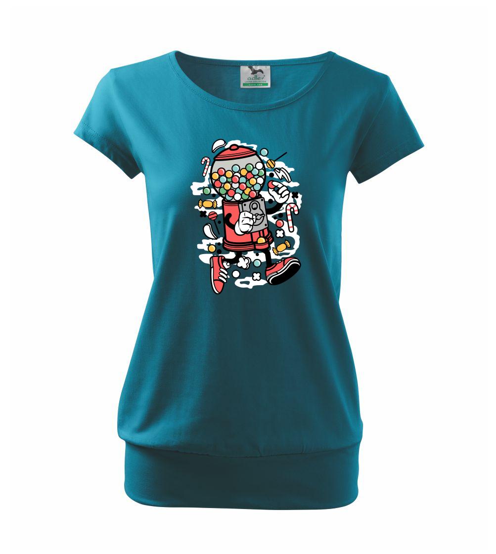 Trendové dámske tričko s veľmi krátkym rukávom, voľnejšieho strihu, v dolnom kraji všité do širokého lemu. Okrúhly priekrčník s úzkym lemom zo zhodného materiálu.