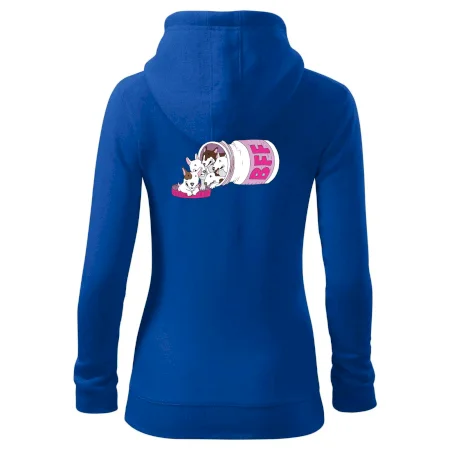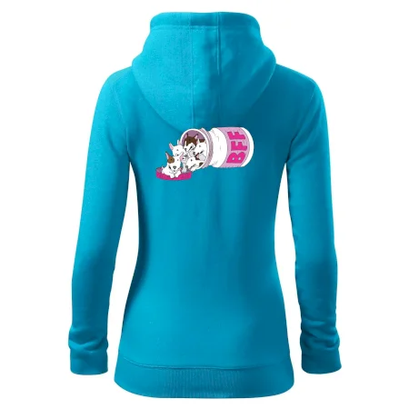 Dámska mikina MALFINI Trendy Zipper 411 spája moderný vzhľad s každodennou praktickosťou. Jej ľahko vypasovaný strih s bočnými švami zvýrazňuje ženskú siluetu, zatiaľ čo celoprepínací zips a kapucňa so sťahovacou šnúrkou dodávajú ležérny nádych.