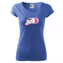Trendové dámske tričko s veľmi krátkym rukávom, voľnejšieho strihu, v dolnom kraji všité do širokého lemu. Okrúhly priekrčník s úzkym lemom zo zhodného materiálu.