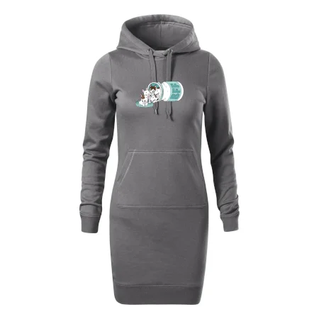 Dámske mikinové šaty MALFINI Snap 419 sú ideálnou voľbou pre ženy, ktoré hľadajú pohodlný a štýlový kúsok na voľný čas alebo každodenné nosenie. Ľahko vypasovaný strih s bočnými švami podčiarkuje ženskú siluetu, zatiaľ čo kapucňa s podšívkou a sťahovacou šnúrkou dodáva ležérny vzhľad. Šaty majú dĺžku nad kolená a sú vybavené našitým vreckom v štýle „klokanky“. Materiál je mäkký a príjemný na dotyk grâce à smesi bavlny a polyesteru s nepočesanou vnútornou stranou.