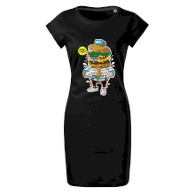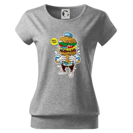 Trendové dámske tričko s veľmi krátkym rukávom, voľnejšieho strihu, v dolnom kraji všité do širokého lemu. Okrúhly priekrčník s úzkym lemom zo zhodného materiálu.