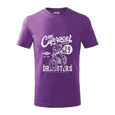 Detské tričko strednej gramáže s bočnými švami. Úzky priekrčník s prídavkom 5% elastanu. Vnútorná časť zadného priekrčníka začistená tkanou páskou. Spevnený ramenný šev.