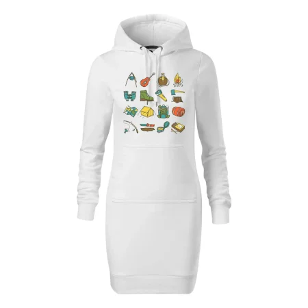 Dámske mikinové šaty MALFINI Snap 419 sú ideálnou voľbou pre ženy, ktoré hľadajú pohodlný a štýlový kúsok na voľný čas alebo každodenné nosenie. Ľahko vypasovaný strih s bočnými švami podčiarkuje ženskú siluetu, zatiaľ čo kapucňa s podšívkou a sťahovacou šnúrkou dodáva ležérny vzhľad. Šaty majú dĺžku nad kolená a sú vybavené našitým vreckom v štýle „klokanky“. Materiál je mäkký a príjemný na dotyk grâce à smesi bavlny a polyesteru s nepočesanou vnútornou stranou.