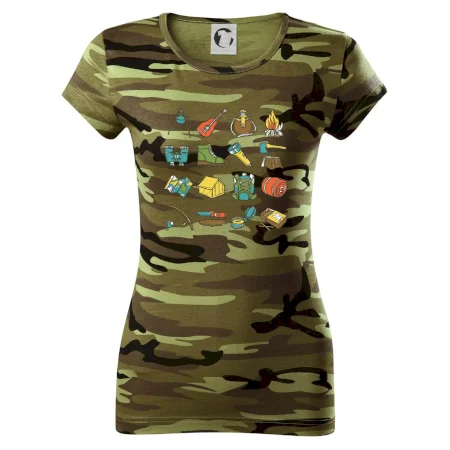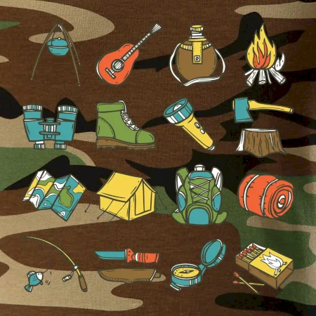 Toto tričko pre kempistov Ti môže poslúžiť ako zoznam vecí, ktoré sa máš vziať na čunder. Odškrtávaj si: gitara, ešus, čutora, ďalekohľad, baterka, sekerka, spacák, stan, mapa, sirky, kompas, nôž, zápalky...máš všetko? Potom môžeš vyraziť a prežiť poriadne dobrodružstvo pri kempovaní v lese.