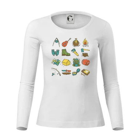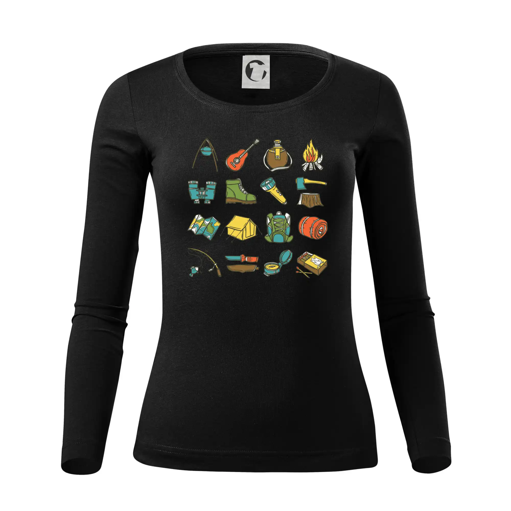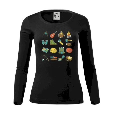 Toto tričko pre kempistov Ti môže poslúžiť ako zoznam vecí, ktoré sa máš vziať na čunder. Odškrtávaj si: gitara, ešus, čutora, ďalekohľad, baterka, sekerka, spacák, stan, mapa, sirky, kompas, nôž, zápalky...máš všetko? Potom môžeš vyraziť a prežiť poriadne dobrodružstvo pri kempovaní v lese.