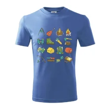 Toto tričko pre kempistov Ti môže poslúžiť ako zoznam vecí, ktoré sa máš vziať na čunder. Odškrtávaj si: gitara, ešus, čutora, ďalekohľad, baterka, sekerka, spacák, stan, mapa, sirky, kompas, nôž, zápalky...máš všetko? Potom môžeš vyraziť a prežiť poriadne dobrodružstvo pri kempovaní v lese.
