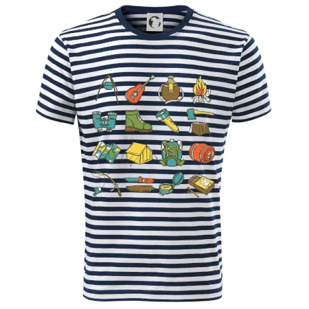 Toto tričko pre kempistov Ti môže poslúžiť ako zoznam vecí, ktoré sa máš vziať na čunder. Odškrtávaj si: gitara, ešus, čutora, ďalekohľad, baterka, sekerka, spacák, stan, mapa, sirky, kompas, nôž, zápalky...máš všetko? Potom môžeš vyraziť a prežiť poriadne dobrodružstvo pri kempovaní v lese.