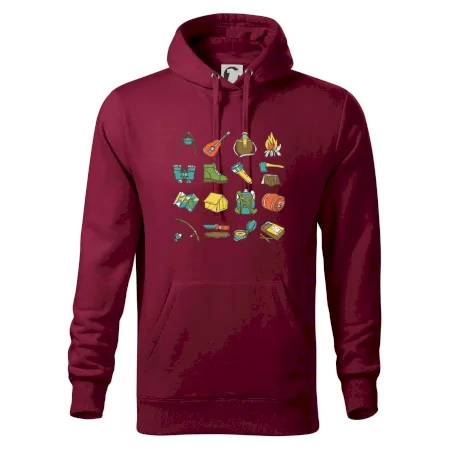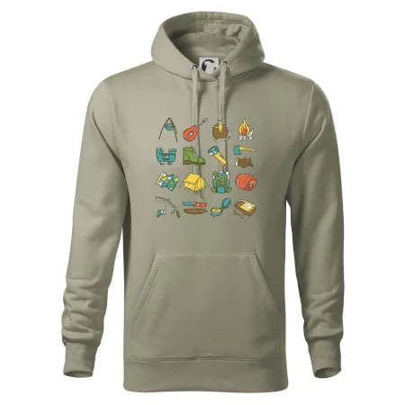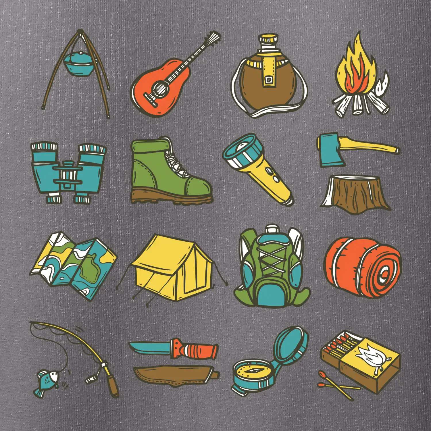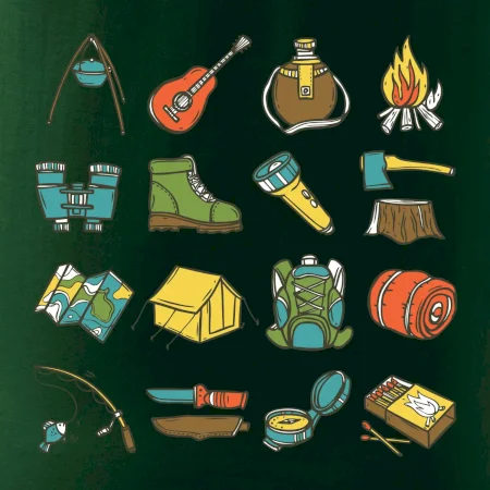 Toto tričko pre kempistov Ti môže poslúžiť ako zoznam vecí, ktoré sa máš vziať na čunder. Odškrtávaj si: gitara, ešus, čutora, ďalekohľad, baterka, sekerka, spacák, stan, mapa, sirky, kompas, nôž, zápalky...máš všetko? Potom môžeš vyraziť a prežiť poriadne dobrodružstvo pri kempovaní v lese.