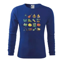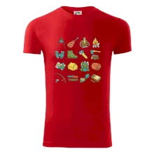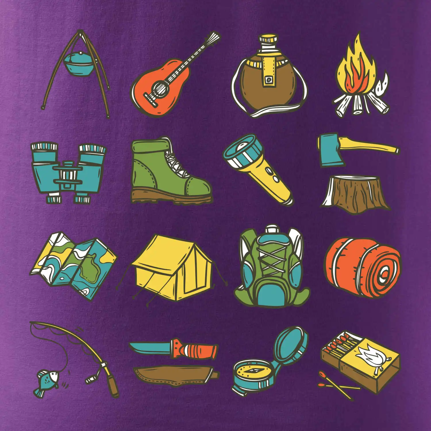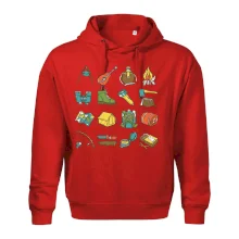 Toto tričko pre kempistov Ti môže poslúžiť ako zoznam vecí, ktoré sa máš vziať na čunder. Odškrtávaj si: gitara, ešus, čutora, ďalekohľad, baterka, sekerka, spacák, stan, mapa, sirky, kompas, nôž, zápalky...máš všetko? Potom môžeš vyraziť a prežiť poriadne dobrodružstvo pri kempovaní v lese.