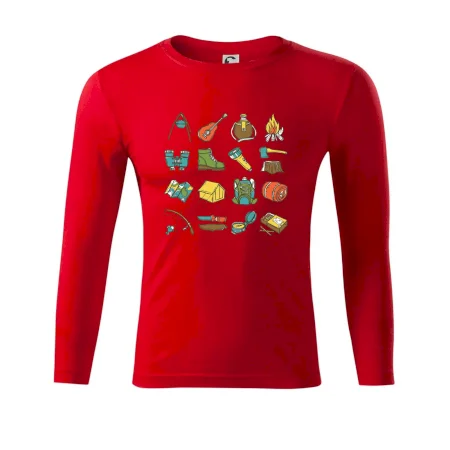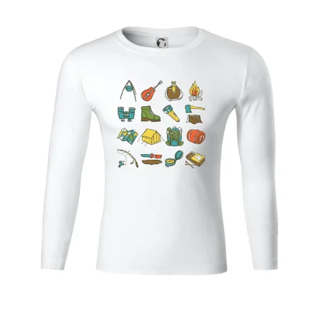Toto tričko pre kempistov Ti môže poslúžiť ako zoznam vecí, ktoré sa máš vziať na čunder. Odškrtávaj si: gitara, ešus, čutora, ďalekohľad, baterka, sekerka, spacák, stan, mapa, sirky, kompas, nôž, zápalky...máš všetko? Potom môžeš vyraziť a prežiť poriadne dobrodružstvo pri kempovaní v lese.