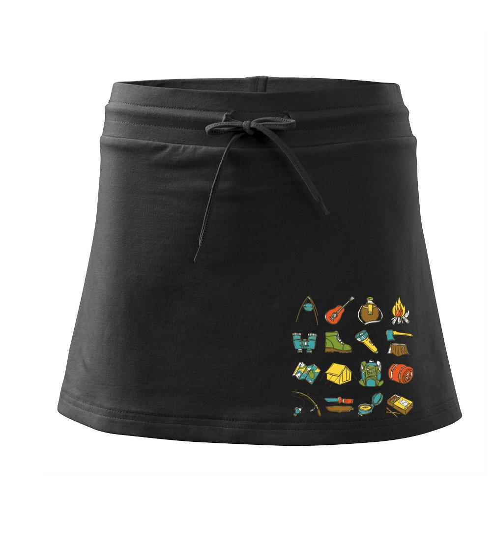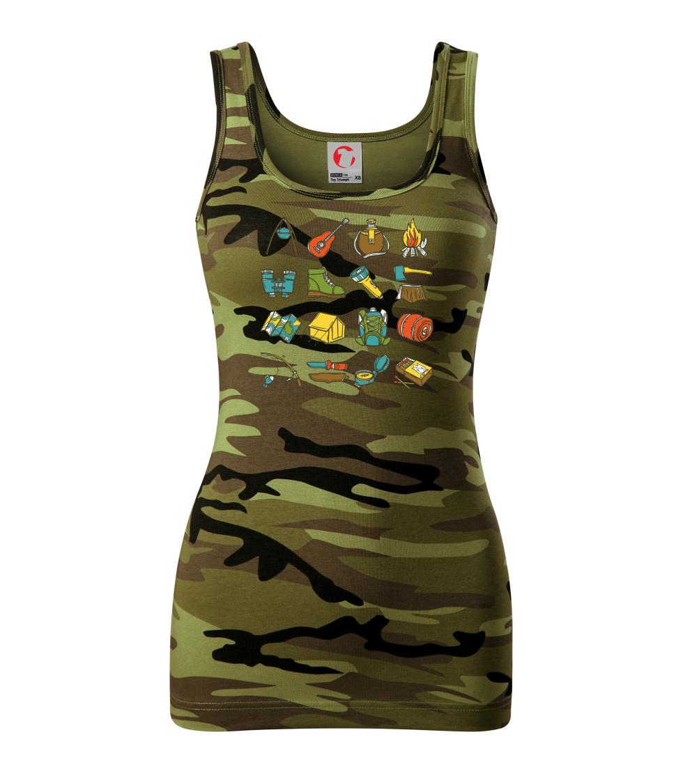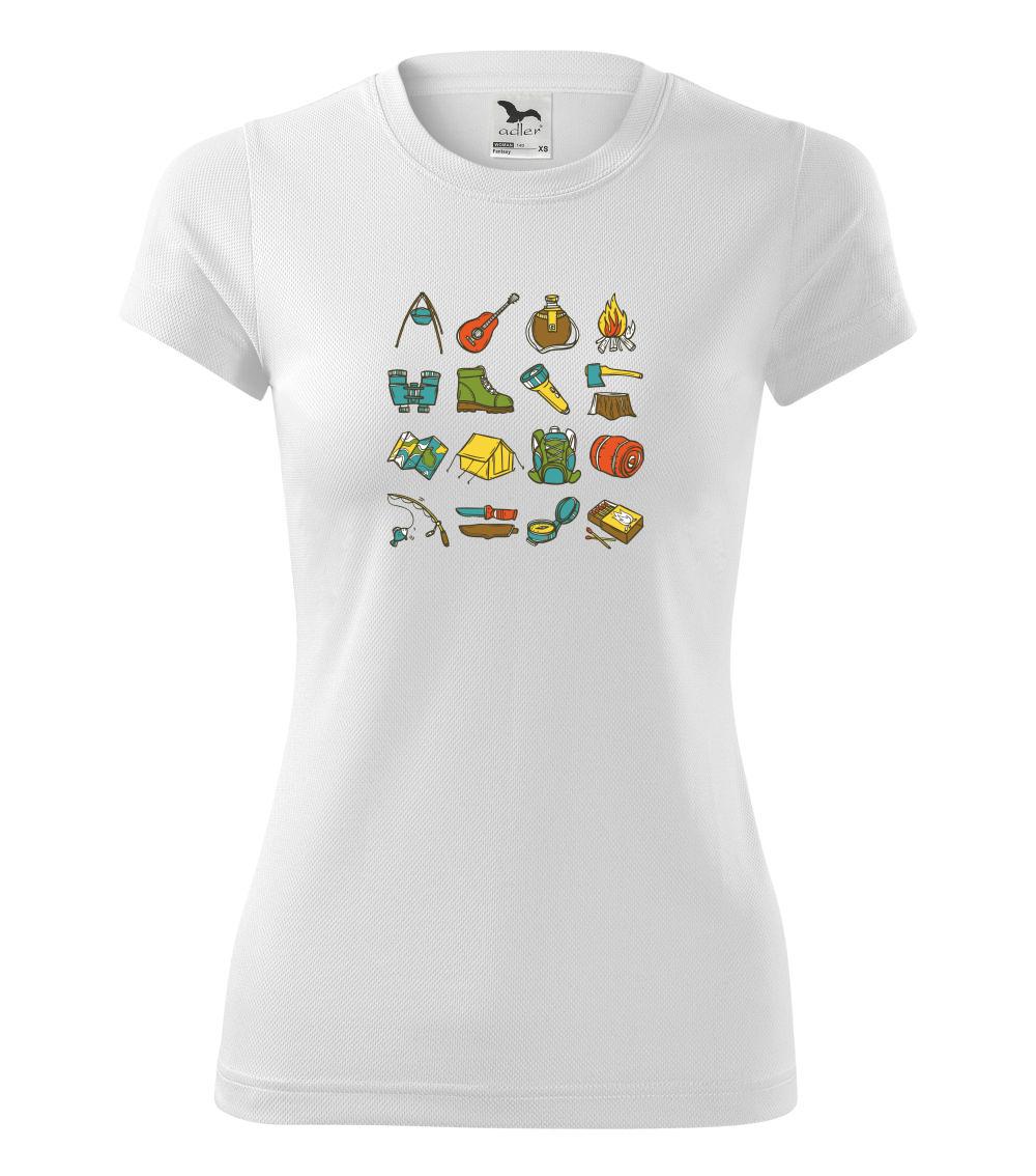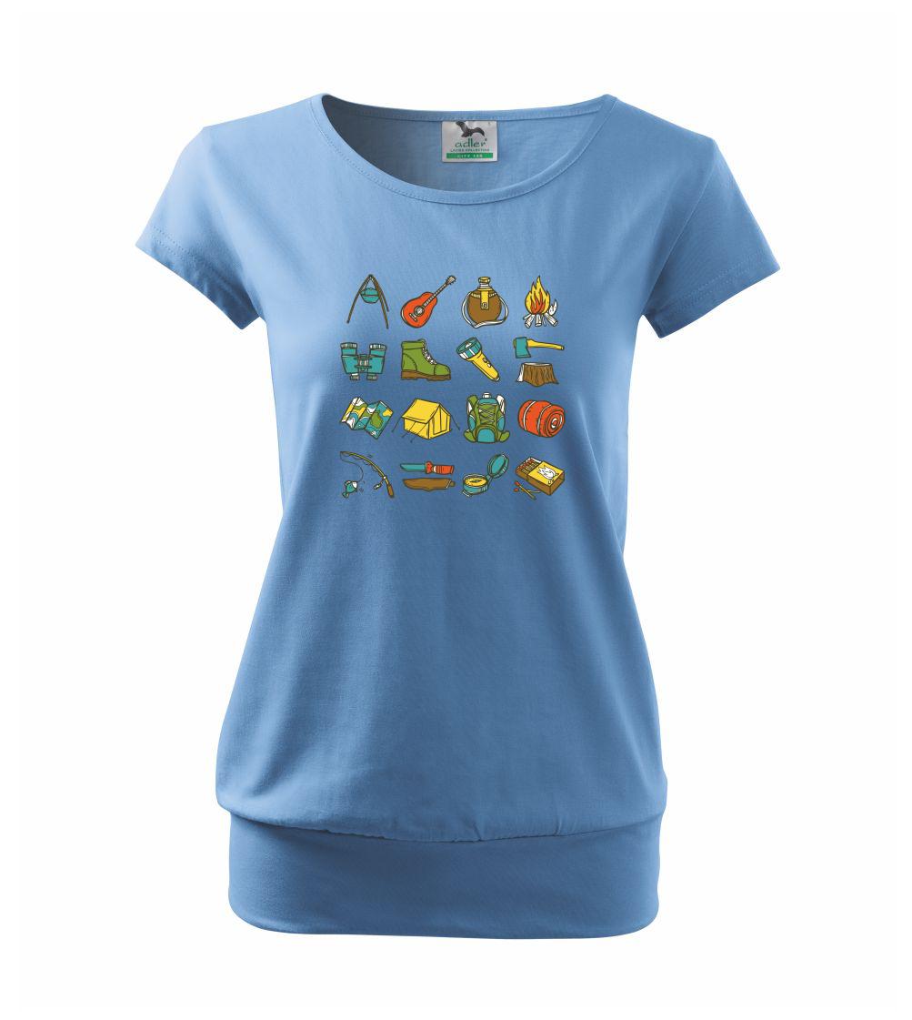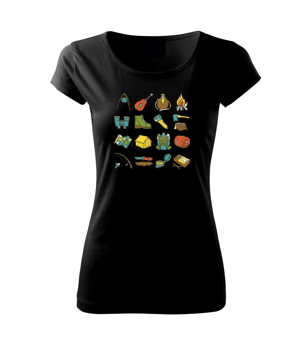 Toto tričko pre kempistov Ti môže poslúžiť ako zoznam vecí, ktoré sa máš vziať na čunder. Odškrtávaj si: gitara, ešus, čutora, ďalekohľad, baterka, sekerka, spacák, stan, mapa, sirky, kompas, nôž, zápalky...máš všetko? Potom môžeš vyraziť a prežiť poriadne dobrodružstvo pri kempovaní v lese.