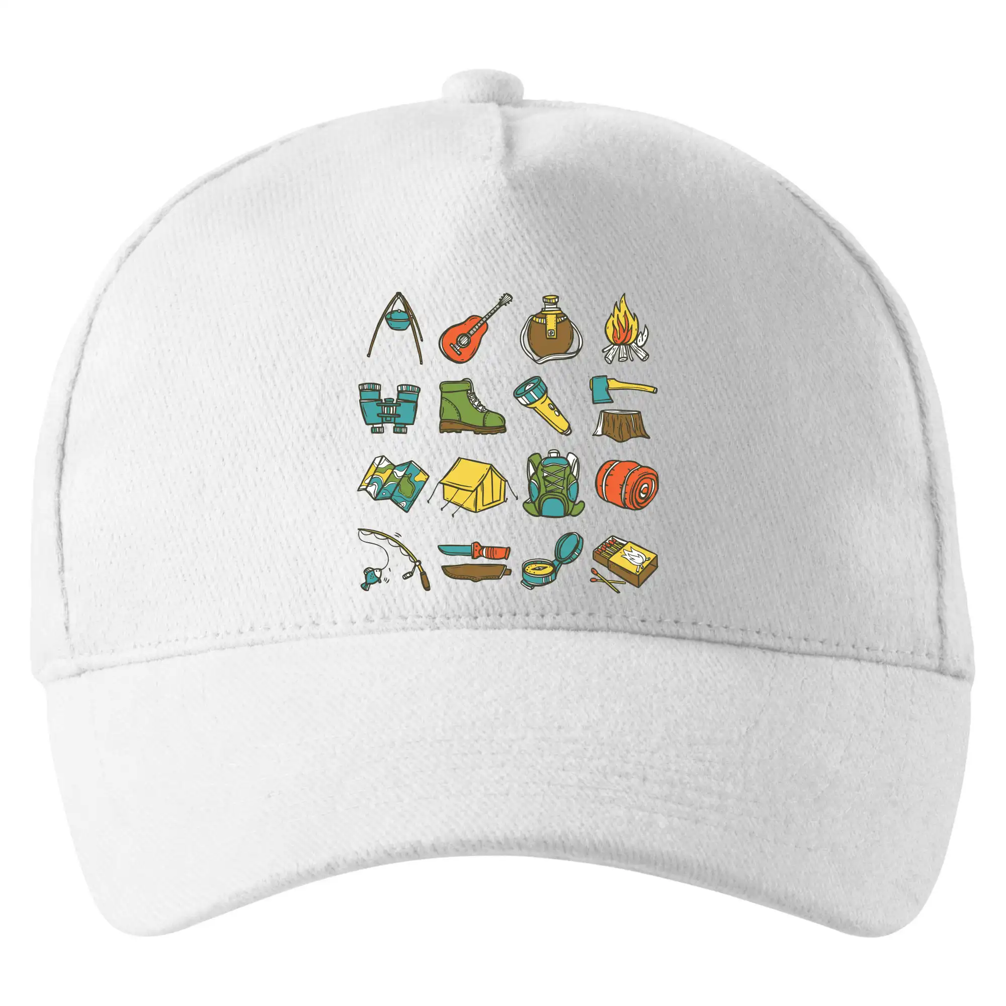 Toto tričko pre kempistov Ti môže poslúžiť ako zoznam vecí, ktoré sa máš vziať na čunder. Odškrtávaj si: gitara, ešus, čutora, ďalekohľad, baterka, sekerka, spacák, stan, mapa, sirky, kompas, nôž, zápalky...máš všetko? Potom môžeš vyraziť a prežiť poriadne dobrodružstvo pri kempovaní v lese.