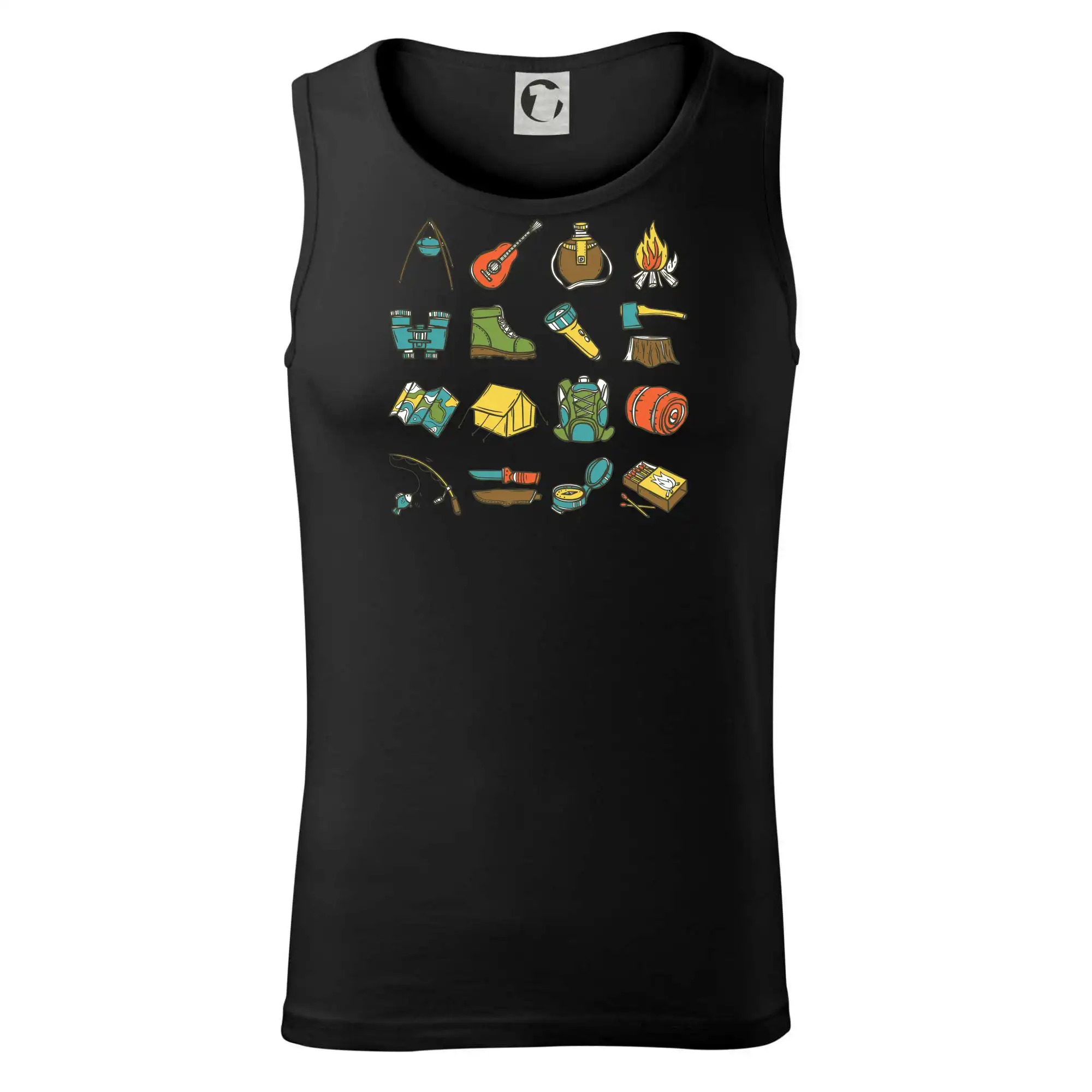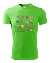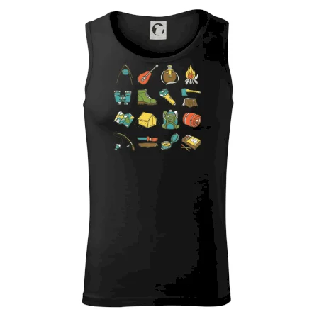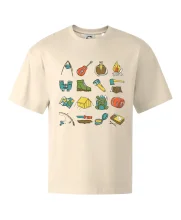 Toto tričko pre kempistov Ti môže poslúžiť ako zoznam vecí, ktoré sa máš vziať na čunder. Odškrtávaj si: gitara, ešus, čutora, ďalekohľad, baterka, sekerka, spacák, stan, mapa, sirky, kompas, nôž, zápalky...máš všetko? Potom môžeš vyraziť a prežiť poriadne dobrodružstvo pri kempovaní v lese.