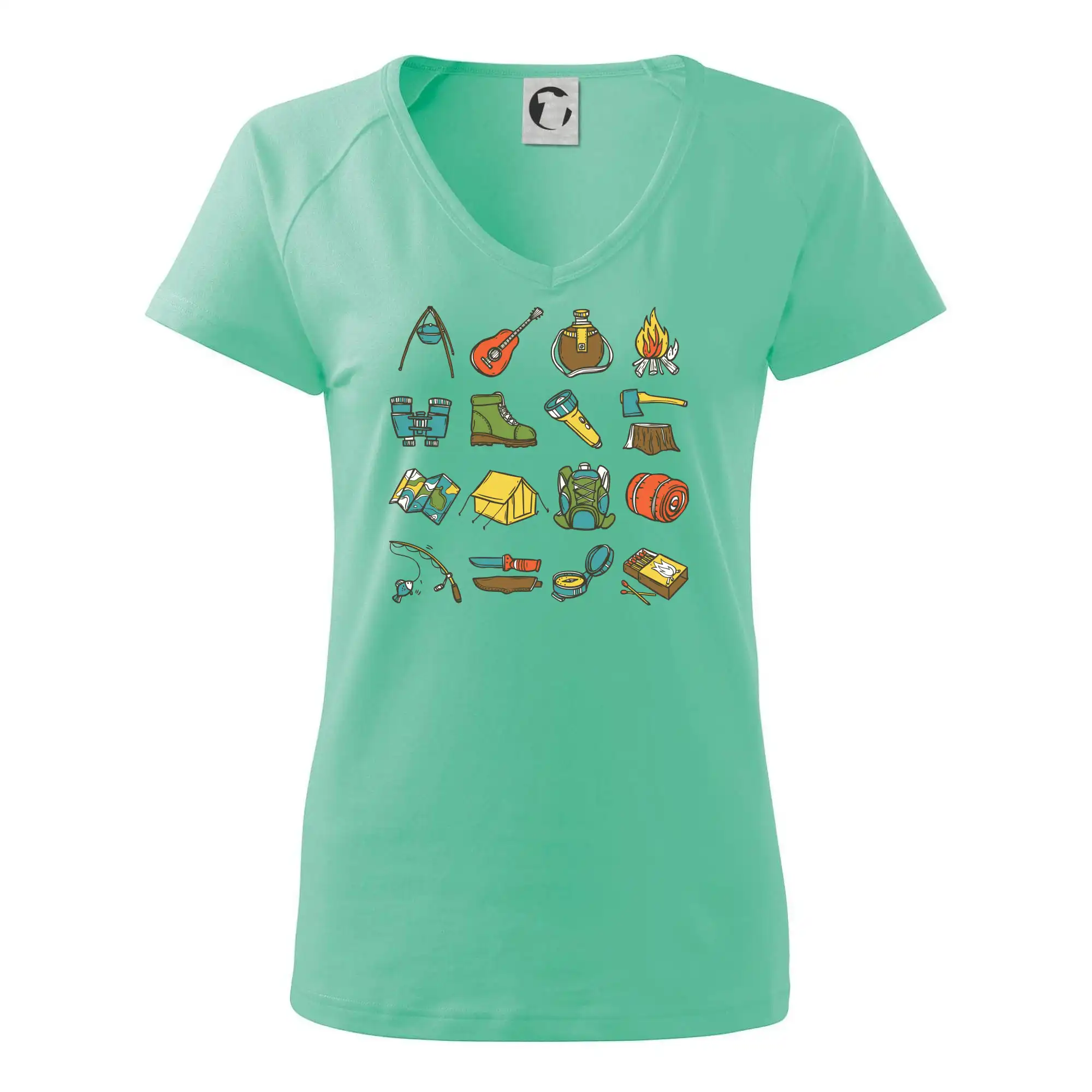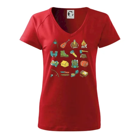 Toto tričko pre kempistov Ti môže poslúžiť ako zoznam vecí, ktoré sa máš vziať na čunder. Odškrtávaj si: gitara, ešus, čutora, ďalekohľad, baterka, sekerka, spacák, stan, mapa, sirky, kompas, nôž, zápalky...máš všetko? Potom môžeš vyraziť a prežiť poriadne dobrodružstvo pri kempovaní v lese.