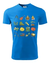 Toto tričko pre kempistov Ti môže poslúžiť ako zoznam vecí, ktoré sa máš vziať na čunder. Odškrtávaj si: gitara, ešus, čutora, ďalekohľad, baterka, sekerka, spacák, stan, mapa, sirky, kompas, nôž, zápalky...máš všetko? Potom môžeš vyraziť a prežiť poriadne dobrodružstvo pri kempovaní v lese.