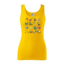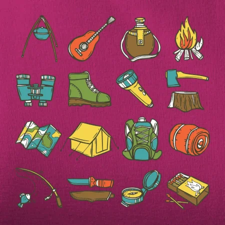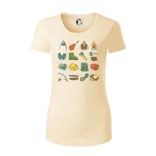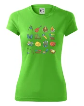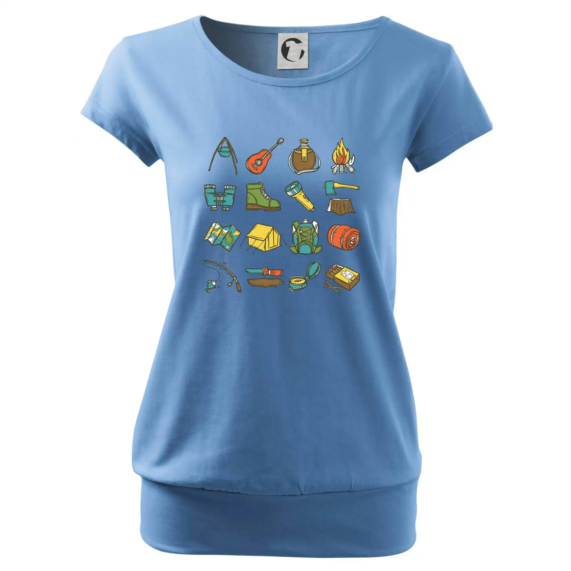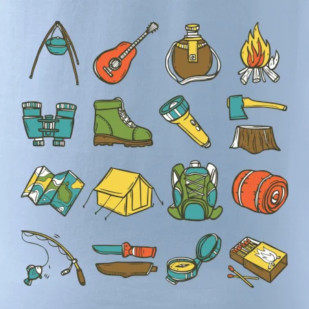 Toto tričko pre kempistov Ti môže poslúžiť ako zoznam vecí, ktoré sa máš vziať na čunder. Odškrtávaj si: gitara, ešus, čutora, ďalekohľad, baterka, sekerka, spacák, stan, mapa, sirky, kompas, nôž, zápalky...máš všetko? Potom môžeš vyraziť a prežiť poriadne dobrodružstvo pri kempovaní v lese.