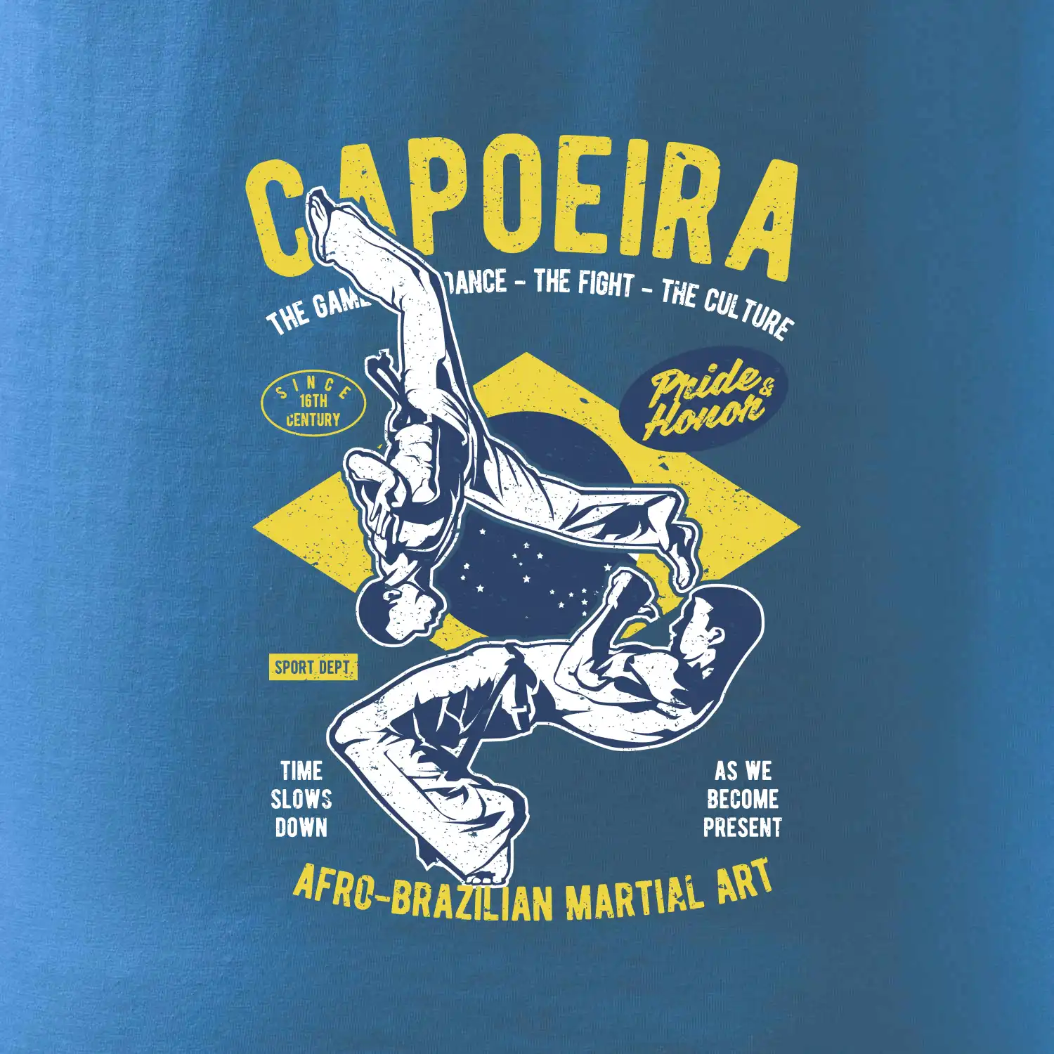 Máš rád bojové športy, čo napríklad capoeira. Kopy, saltá a premety. Kúp si štýlové tričko s bojovým umením. Tričko s motívom športu capoeira je vhodný darček pre každého milovníka tohto športu.