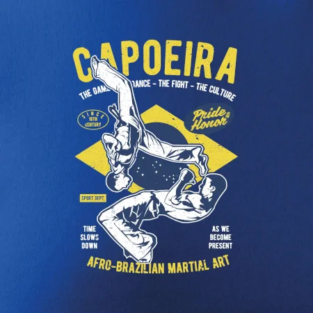 Máš rád bojové športy, čo napríklad capoeira. Kopy, saltá a premety. Kúp si štýlové tričko s bojovým umením. Tričko s motívom športu capoeira je vhodný darček pre každého milovníka tohto športu.