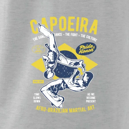 Máš rád bojové športy, čo napríklad capoeira. Kopy, saltá a premety. Kúp si štýlové tričko s bojovým umením. Tričko s motívom športu capoeira je vhodný darček pre každého milovníka tohto športu.