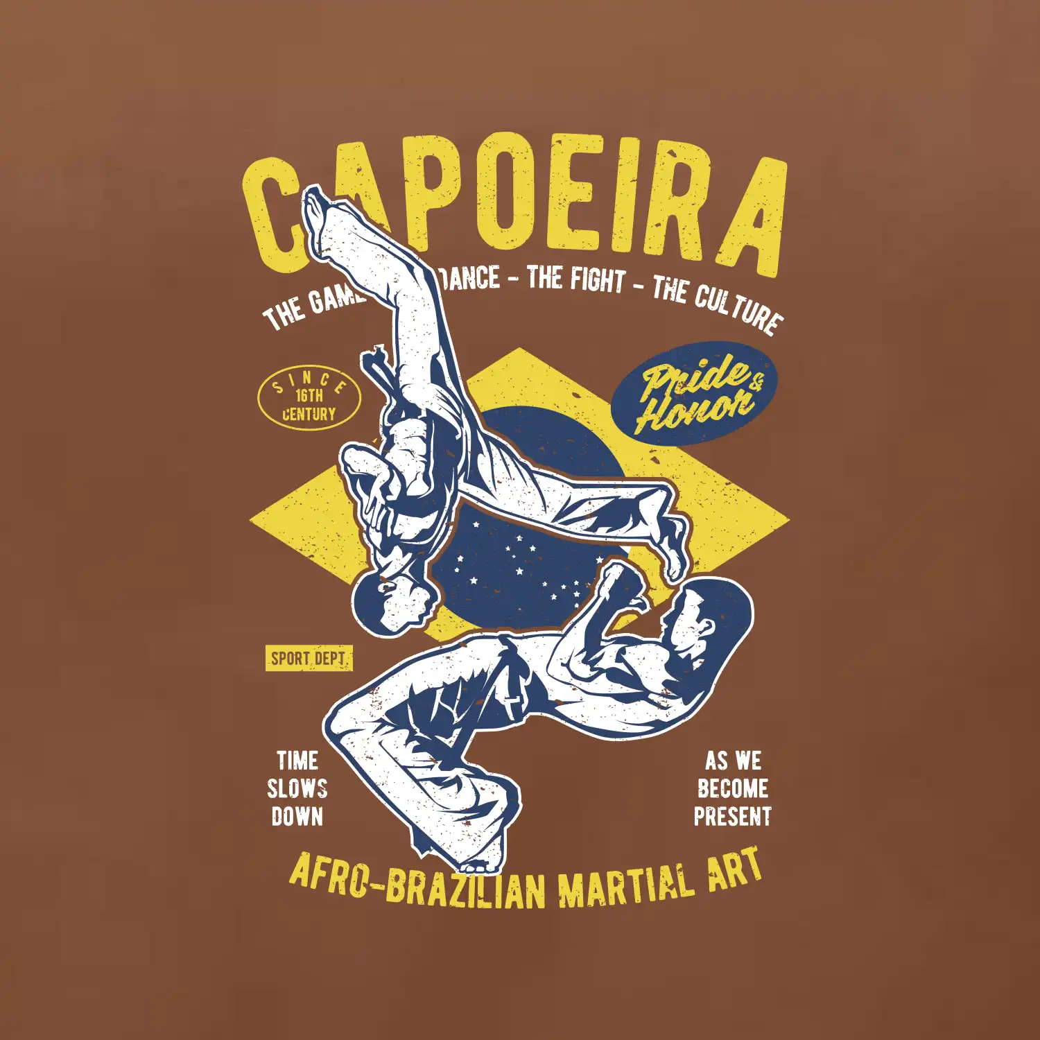 Máš rád bojové športy, čo napríklad capoeira. Kopy, saltá a premety. Kúp si štýlové tričko s bojovým umením. Tričko s motívom športu capoeira je vhodný darček pre každého milovníka tohto športu.