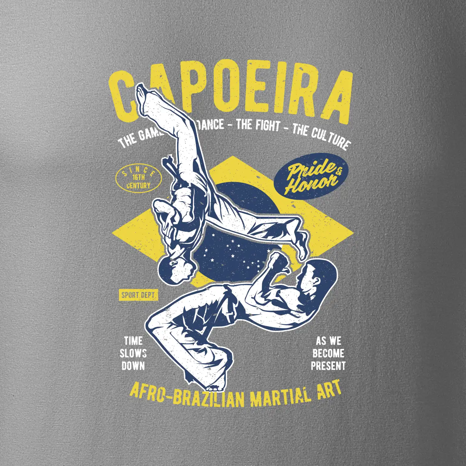 Máš rád bojové športy, čo napríklad capoeira. Kopy, saltá a premety. Kúp si štýlové tričko s bojovým umením. Tričko s motívom športu capoeira je vhodný darček pre každého milovníka tohto športu.