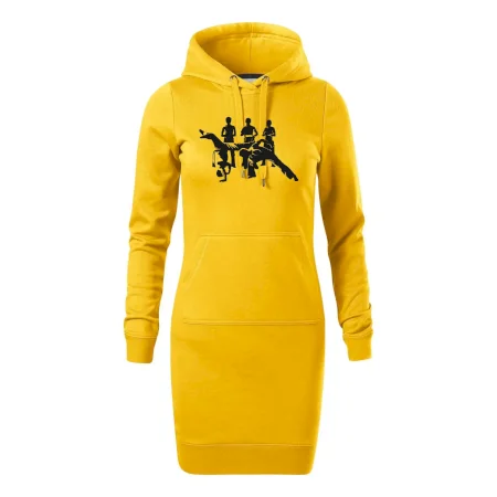 Dámske mikinové šaty MALFINI Snap 419 sú ideálnou voľbou pre ženy, ktoré hľadajú pohodlný a štýlový kúsok na voľný čas alebo každodenné nosenie. Ľahko vypasovaný strih s bočnými švami podčiarkuje ženskú siluetu, zatiaľ čo kapucňa s podšívkou a sťahovacou šnúrkou dodáva ležérny vzhľad. Šaty majú dĺžku nad kolená a sú vybavené našitým vreckom v štýle „klokanky“. Materiál je mäkký a príjemný na dotyk grâce à smesi bavlny a polyesteru s nepočesanou vnútornou stranou.