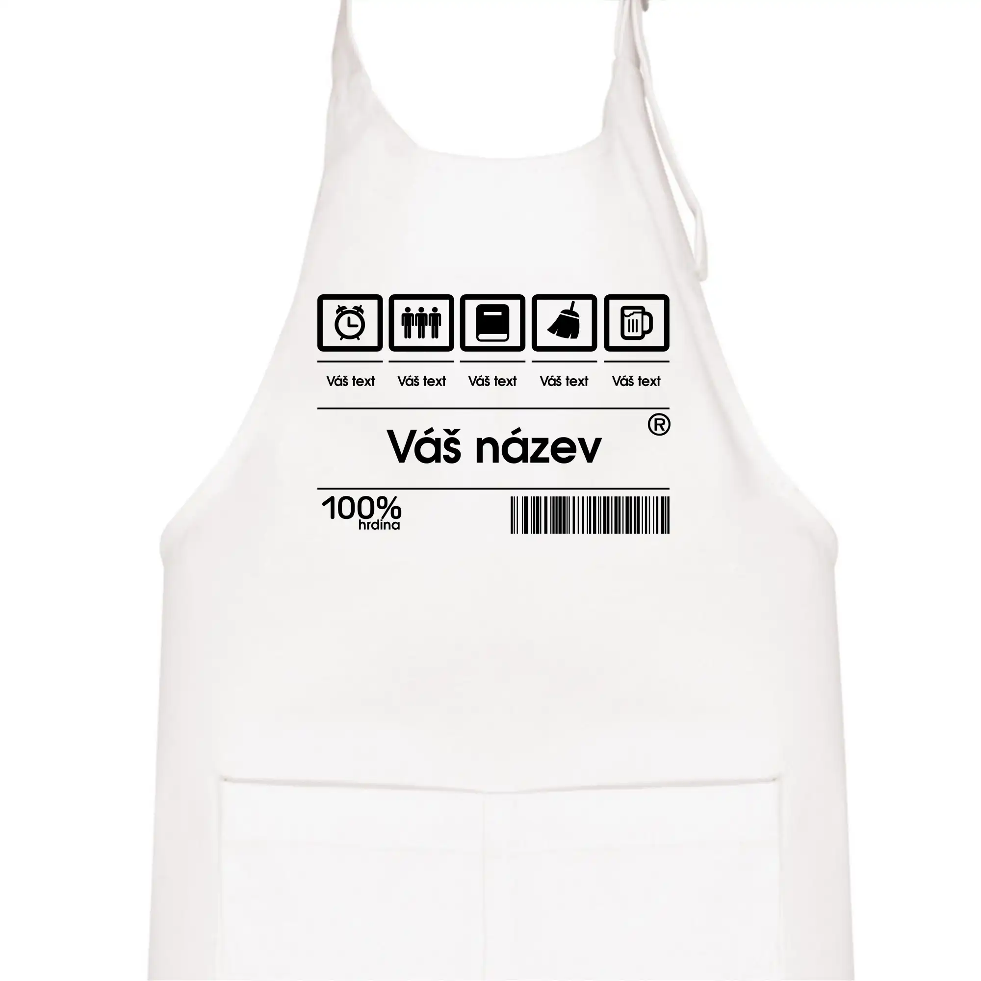 Do poznámky k objednávce nám napiš co chceš mít místo nápisu "vlastní text" a my doplníme ikonky, texty a budeš moct darovat naprosto originální triko. Tričko s originálním čárovým kódem pro každého. Čárový kód na přání!