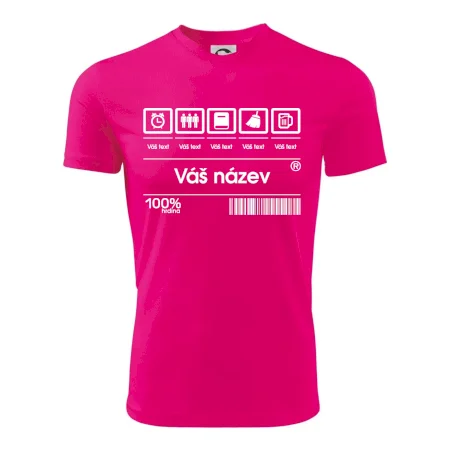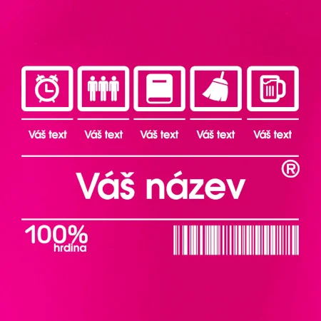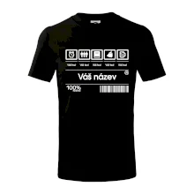 Do poznámky k objednávce nám napiš co chceš mít místo nápisu "vlastní text" a my doplníme ikonky, texty a budeš moct darovat naprosto originální triko. Tričko s originálním čárovým kódem pro každého. Čárový kód na přání!
