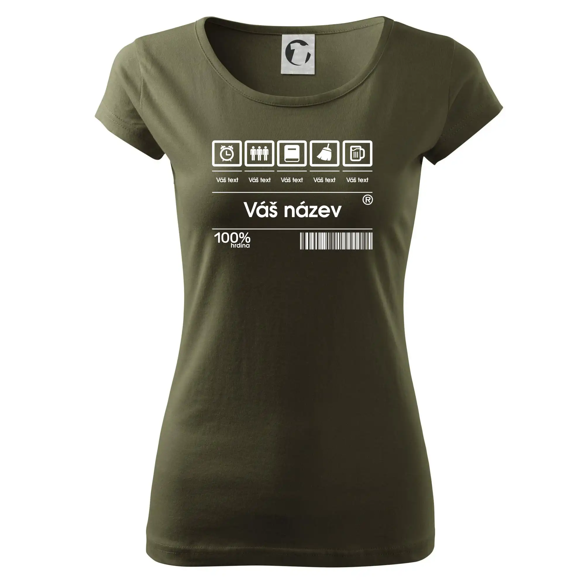 Do poznámky k objednávce nám napiš co chceš mít místo nápisu "vlastní text" a my doplníme ikonky, texty a budeš moct darovat naprosto originální triko. Tričko s originálním čárovým kódem pro každého. Čárový kód na přání!