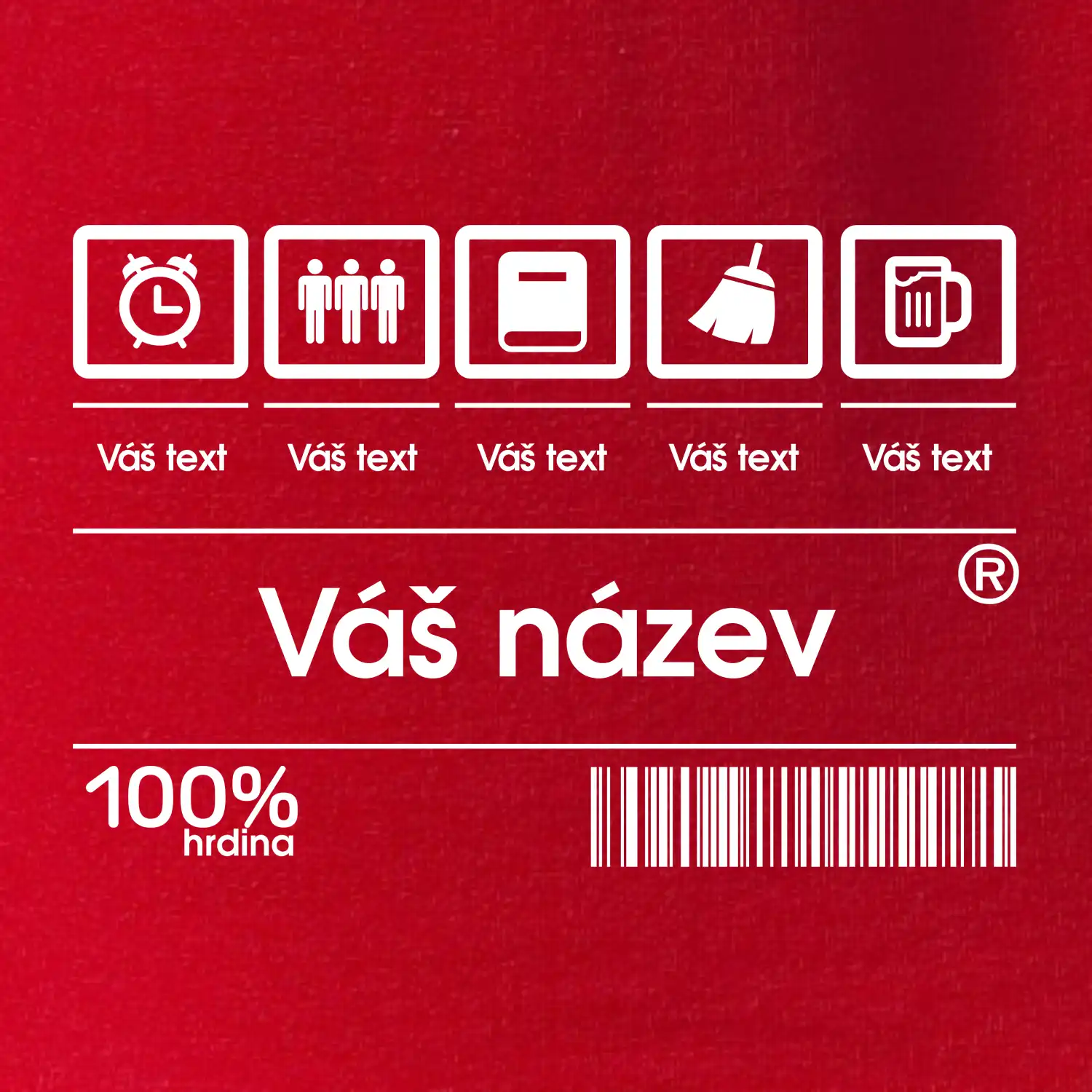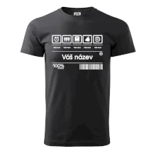 Do poznámky k objednávce nám napiš co chceš mít místo nápisu "vlastní text" a my doplníme ikonky, texty a budeš moct darovat naprosto originální triko. Tričko s originálním čárovým kódem pro každého. Čárový kód na přání!