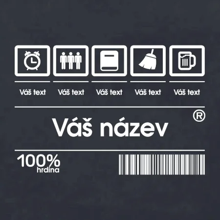 Do poznámky k objednávce nám napiš co chceš mít místo nápisu "vlastní text" a my doplníme ikonky, texty a budeš moct darovat naprosto originální triko. Tričko s originálním čárovým kódem pro každého. Čárový kód na přání!