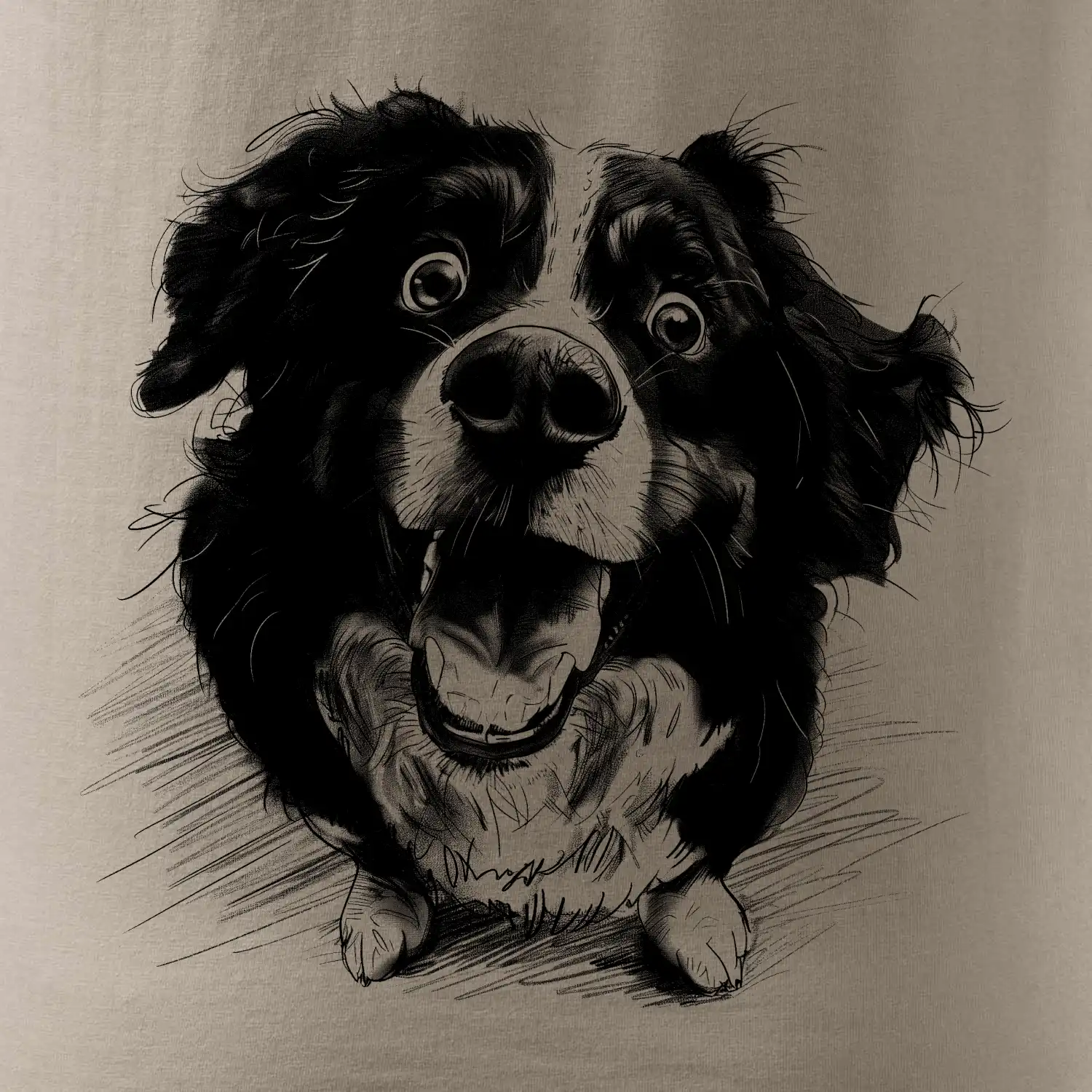 Čiernobiela karikatúra Bernský salašnícky pes