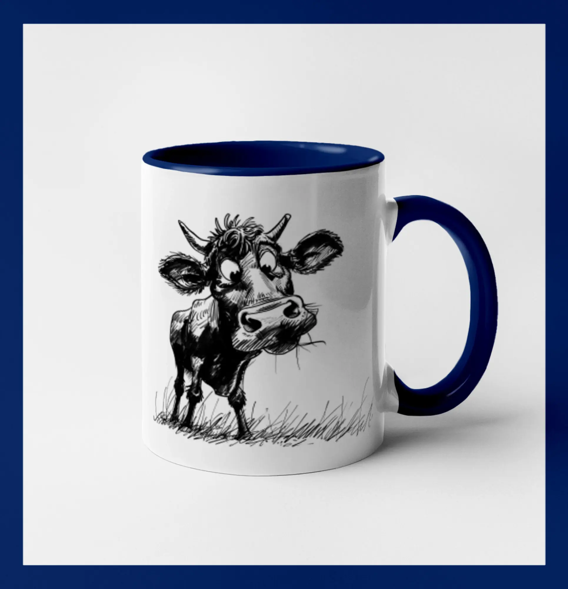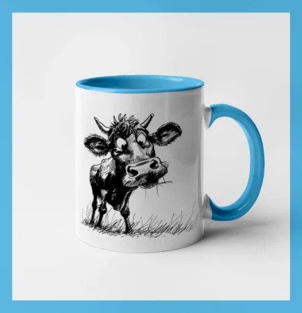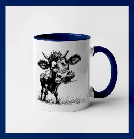 Čiernobiela karikatúra krava stojaca