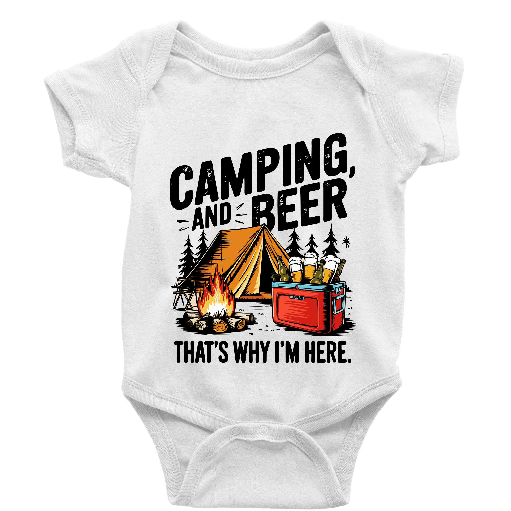 Černý nápis nápis Camping and beer