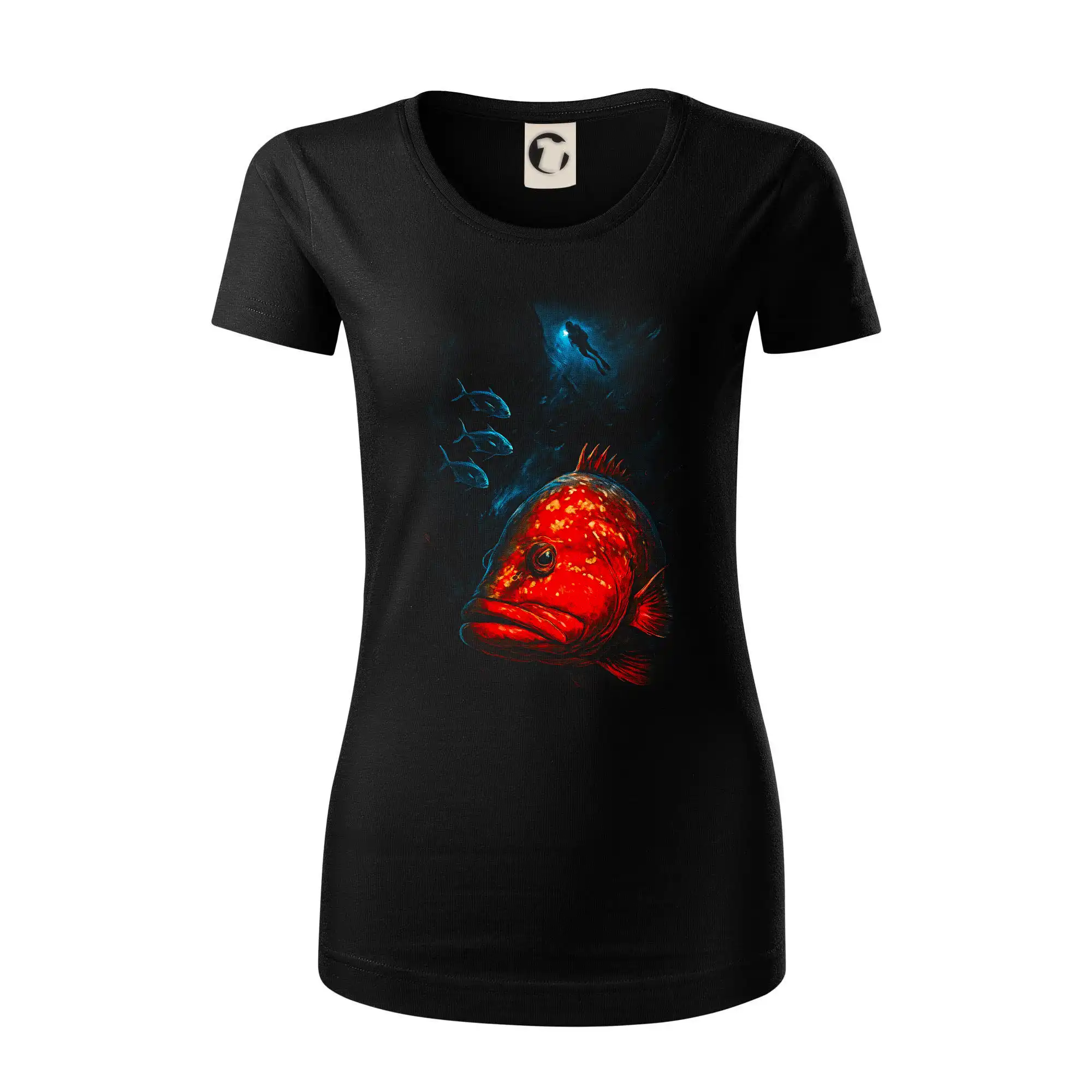 Červená ryba s potapáčom v pozadí