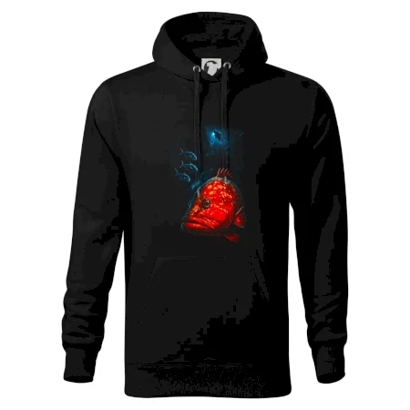 Červená ryba s potapáčom v pozadí - Mikina pánska Cape s kapucňou