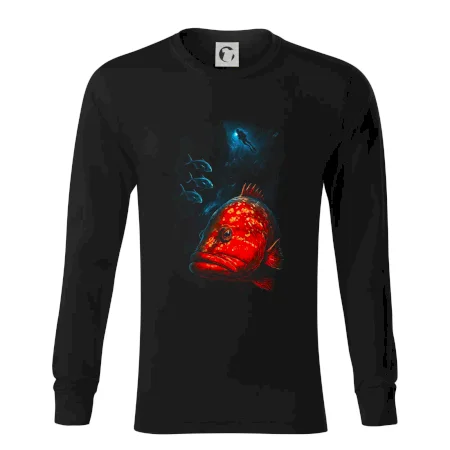 Červená ryba s potapáčom v pozadí