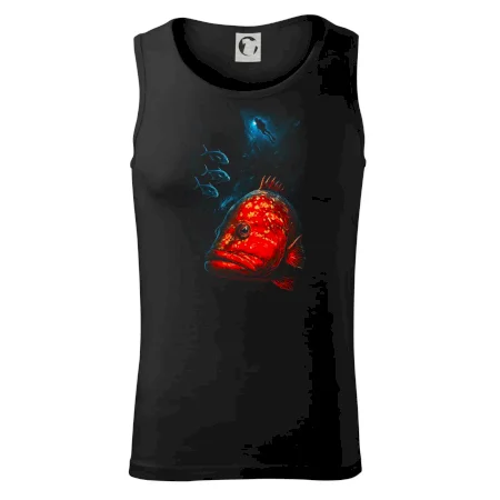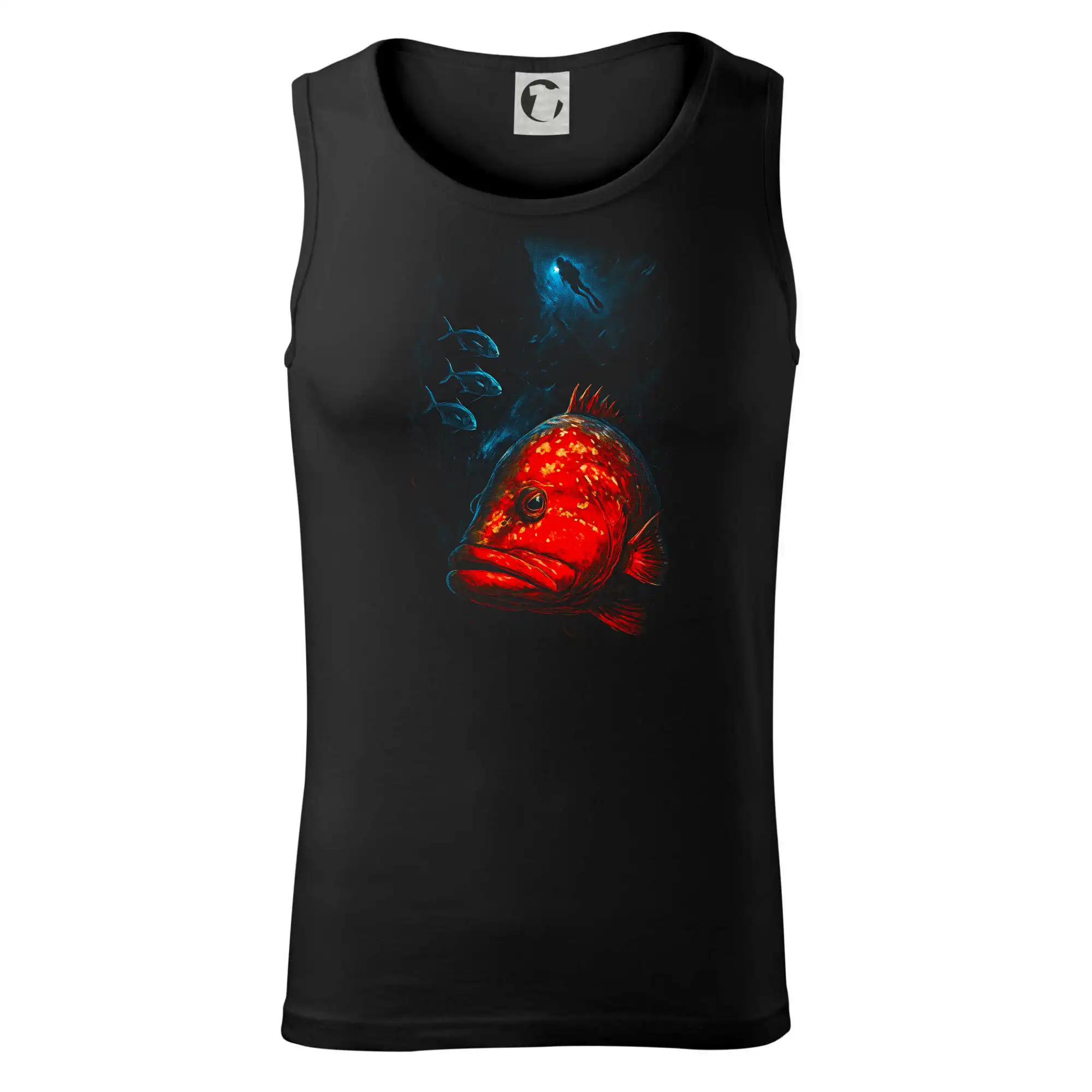 Červená ryba s potapáčom v pozadí