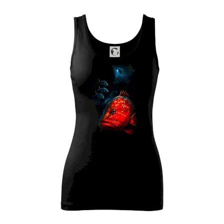 Červená ryba s potapáčom v pozadí