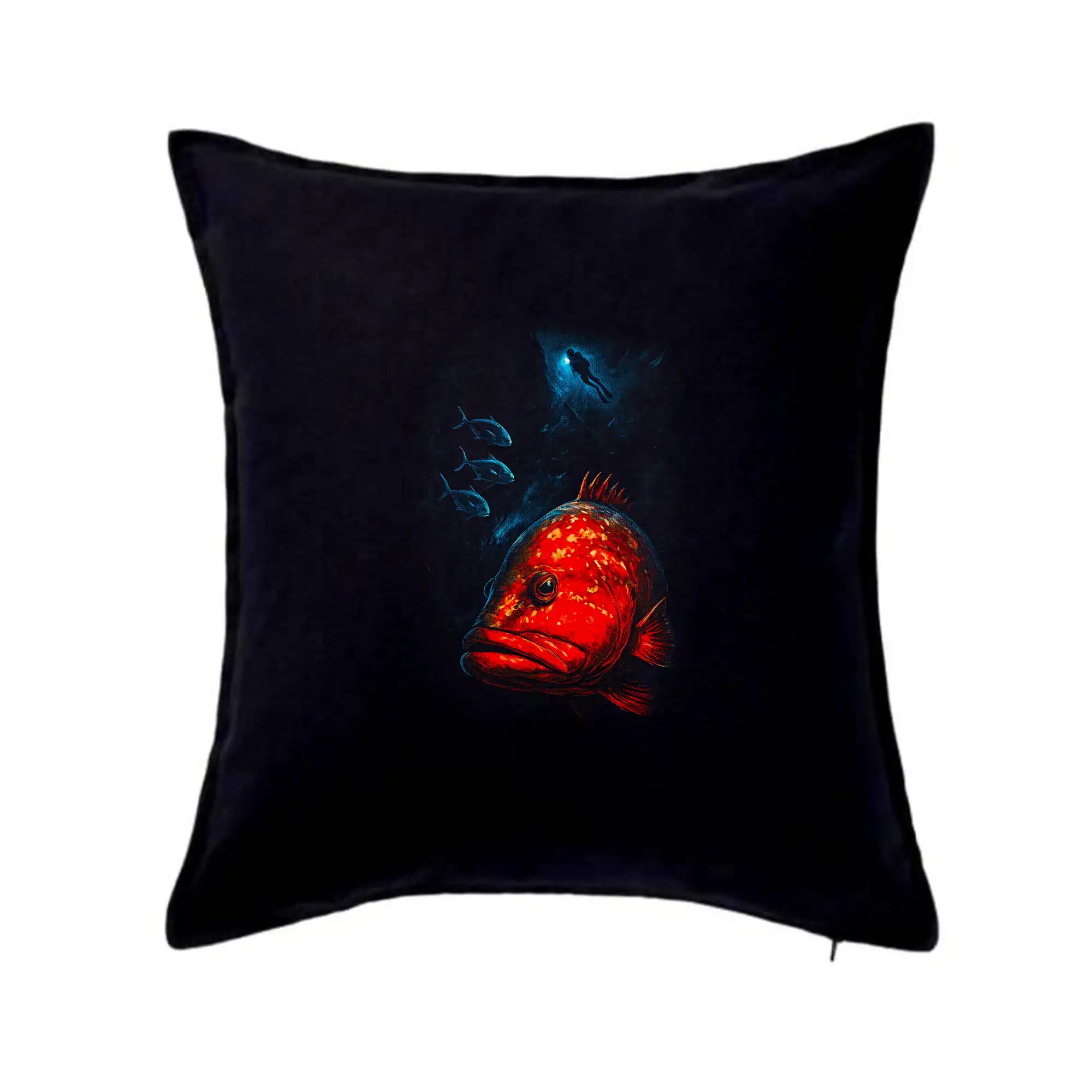Červená ryba s potapáčom v pozadí