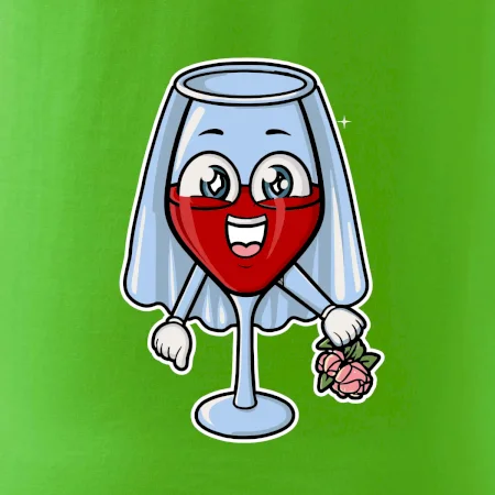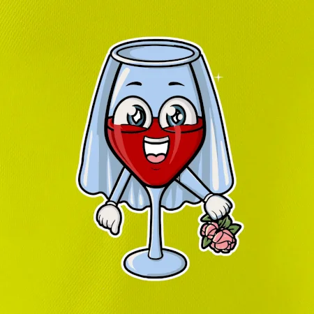 Sklenka vína se závojem pro budoucí nevěstu. Triko na rozlučku se svobodou.