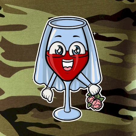 Sklenka vína se závojem pro budoucí nevěstu. Triko na rozlučku se svobodou.